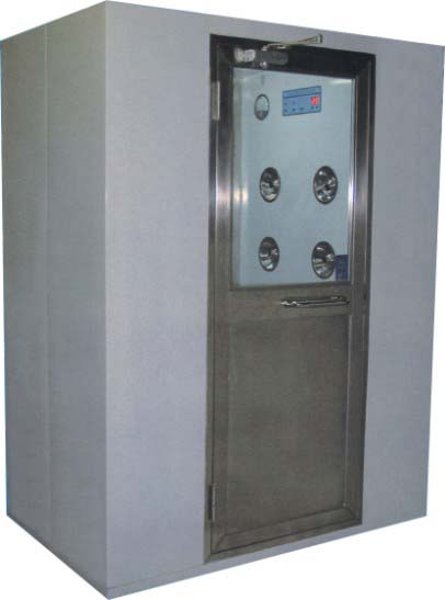 風淋室是人員進出潔凈室常用的一種凈化裝置。它可以有效的吹除人員表面的塵埃粒子,減少帶入潔凈室內的灰塵量;同時在潔凈區與非潔凈區之間起到氣閘室的作用,防止不清潔空氣侵入及保持潔凈室內氣壓穩定。以配合潔凈空調系統確保潔凈室達到所需的潔凈度。