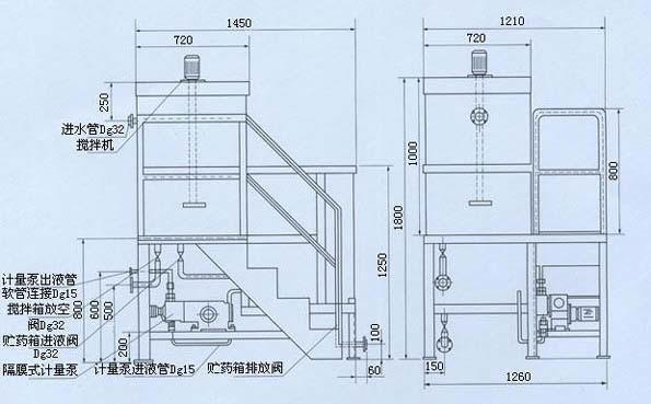 一、加藥裝置 在水處理、化工、印染等行業(yè),需向水中或其它液體中按比例的投加另一種液體,其生產(chǎn)過程是連續(xù)的,這種投加工作也必須同樣是連續(xù)的,如水處理中投加混凝劑、助凝劑、消毒劑、冷卻塔投加阻垢劑、化工、印染中定時(shí)定量投加一定量的化學(xué)藥劑、酸堿等,這些都需要一種既能配制溶液,又能定量定時(shí)投加藥劑的設(shè)備,而這正是我們的TV系列加藥裝置所需具備的基本性能。