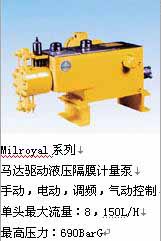 MBH系列/milroyal系列馬達(dá)驅(qū)動(dòng)液壓隔膜計(jì)量泵性能參數(shù)及特點(diǎn):*液壓驅(qū)動(dòng)隔膜泵/柱塞泵,*振幅調(diào)節(jié),平緩脈動(dòng),*高精度進(jìn)、出口止回閥*內(nèi)置可調(diào)壓力止回閥*高性能隔膜無(wú)需隔膜護(hù)盤(pán)*可手動(dòng)、電動(dòng)、調(diào)頻、氣動(dòng)調(diào)節(jié)流量*泵頭材質(zhì):PVC、316SS、合金20、哈氏合金