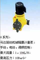 G系列機(jī)械隔膜計(jì)量泵性能參數(shù)及特點(diǎn):*最大流量:1800L/H,最大出口壓力:12BAR*平緩脈動(dòng)設(shè)計(jì),完全無(wú)泄露*泵頭材質(zhì):PVC、聚丙烯、聚四氟乙烯、316不銹鋼*加固的鋁殼體,球墨鑄鐵齒輪,耐磨球軸承*可手動(dòng)/電動(dòng)/變頻調(diào)節(jié)流量