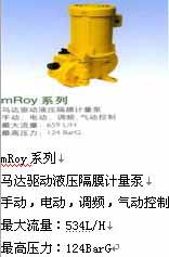 maxRoy液壓隔膜計(jì)量泵系列性能參數(shù)及特點(diǎn):*高精度進(jìn)、出口止回閥*內(nèi)置可調(diào)壓力止回閥*可手動(dòng)、電動(dòng)、調(diào)頻、氣動(dòng)調(diào)節(jié)流量*在泵運(yùn)行或停止?fàn)顟B(tài)均可調(diào)節(jié)流量*0—100%沖程可調(diào),穩(wěn)態(tài)精度±1%*滿(mǎn)足API675標(biāo)準(zhǔn)