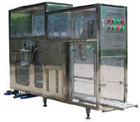 微電腦自動洗灌機是灌裝純凈水的專用設(shè)備,也可用于蒸餾水、礦泉水和其他無菌液體的灌裝。該設(shè)備集洗瓶、灌裝、套蓋、壓蓋和成品送出為一體,使用的原材料符合食品行業(yè)和其他行業(yè)要求。 該設(shè)備采用220V 或380V、50HZ交流電源和性能可靠、操作簡便、維護簡單的可編程控制器控制系統(tǒng)和氣動控制系統(tǒng)、整個洗瓶、灌裝、套蓋和壓蓋全過程均在封閉隧道內(nèi)進行,有效地防止純凈水在灌裝過程中可能發(fā)生的二次污染,完全符合衛(wèi)生標準