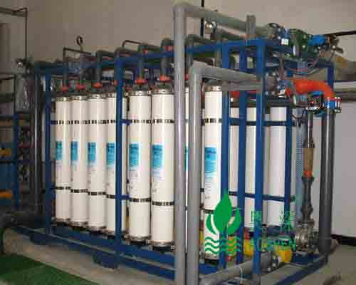 超濾是一種不對稱半透過薄膜,常用材料有醋酸纖維素膜(CA)、聚砜膜(PS)、聚丙烯膜(PAN)等。在一定的壓力下,水在膜表面上流動,水與溶解鹽和其它電解質等微小顆粒能透過超濾膜,而蛋白質、各類酶、細菌、病毒、乳膠、熱源與其它分子量大的顆粒和膠體物質被超濾膜阻擋,從而使水中的部分微粒得到分離、濃縮。超濾膜孔徑為 0.1-0.002µm ,介于反滲透與微孔膜之間。 超濾裝置是根據生產的要求,采用相應截留分子量的超濾膜進行工藝流程設計。超濾分離在常溫、低壓下運行無相態變化,膜不易阻塞,操作極為方便。